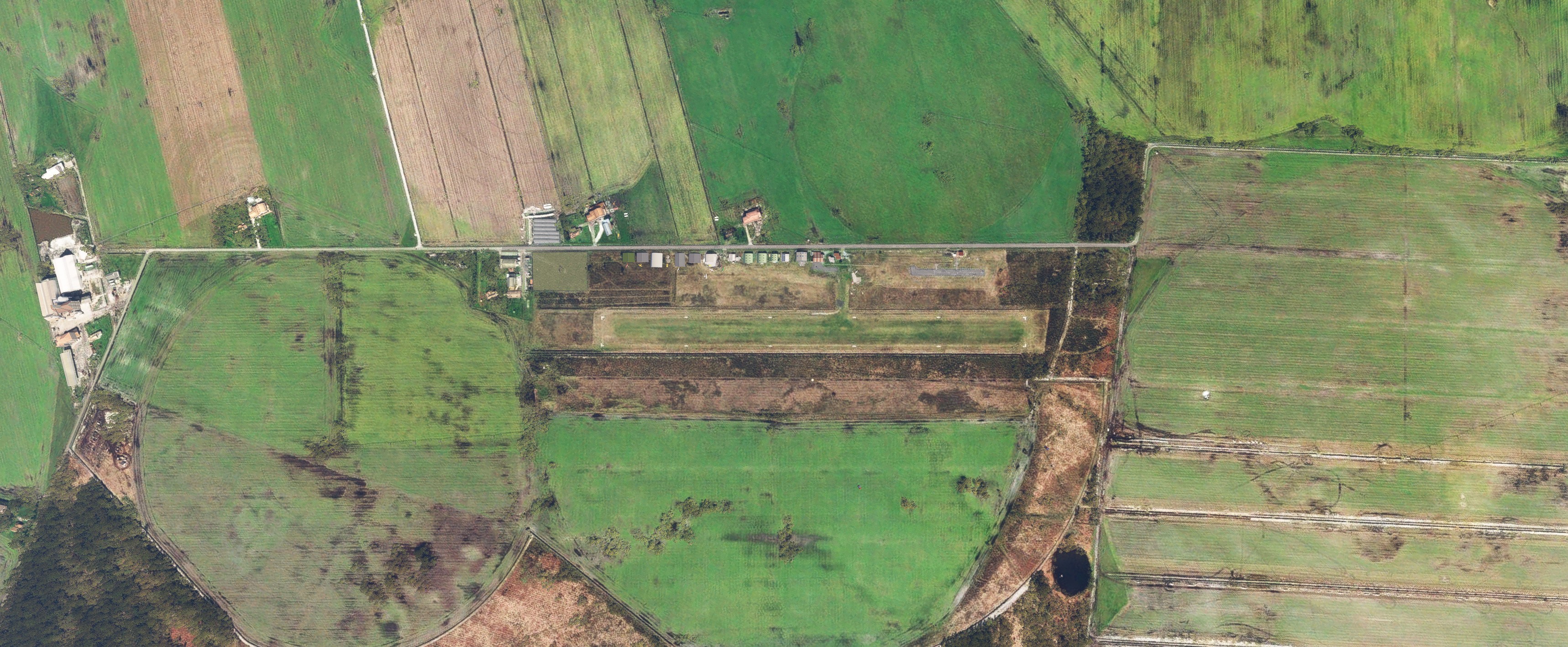 The airfield has a grass runway running east-west (07/25), 900 metres long and 60 metres wide.